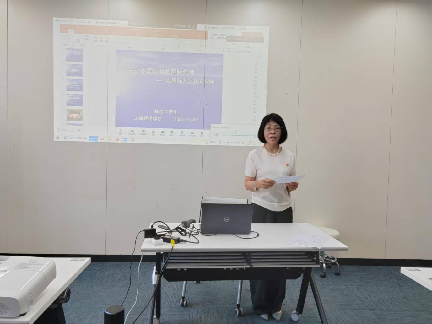 为拓宽教职工国际视野,深化对中国文化海外传播重要性的认知,推动师德师风建设月活动走深走实,10月9日下午,学院党总支按照2025年师德师风建设月活动方案在四楼会议室成功举办“中国文化的海外传播”专题讲座暨海外参访交流会。活动特邀校外知名专家林佐平教授主讲,学院全体教职工参会,会议由党总支书记周英芬主持。