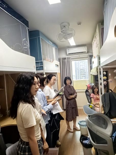 为切实保障学生在国庆假期期间的人身与财产安全,营造安全、稳定、和谐的校园环境,国际教育学院于9月29日下午组织开展了全面细致的节前宿舍安全大排查工作。国际教育学院党总支书记周英芬、副书记徐伟,带领全体辅导员老师深入学生宿舍,对于用电安全、消防安全、卫生环境等方面进行了细致的排查。